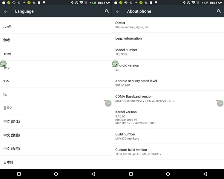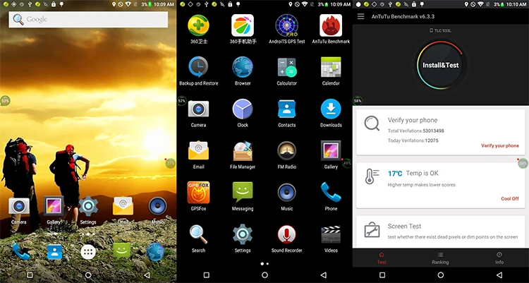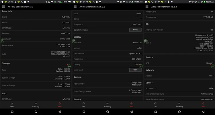 | CPU | MTK6735VC Cortex A53 quad core, 1.3 GHz; GPU: Mali-T720 |